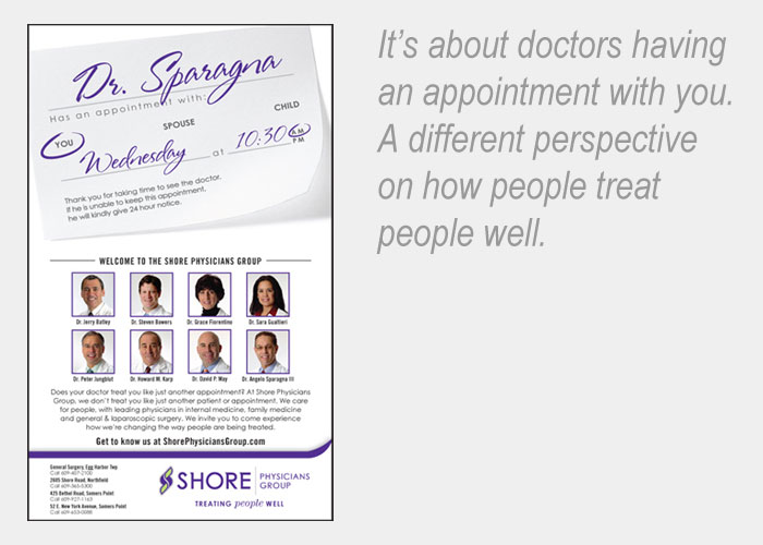 As a new medical group in the South Jersey healthcare arena, Shore Physicians Group required more than just a corporate identity and brand recognition. Through FTFOI, Shore Physicians Group was able to break through the clutter of area medical group marketing and change the face of local healthcare to local people care.